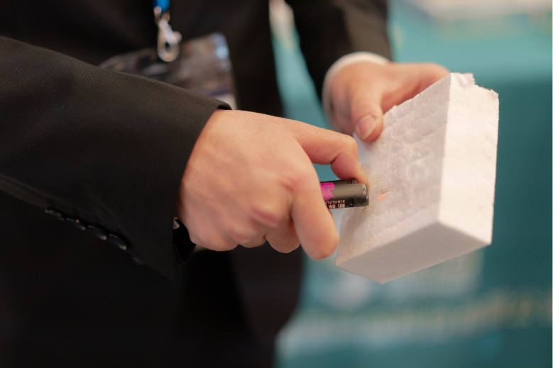 公司參展人員正向采購(gòu)商演示防火性能